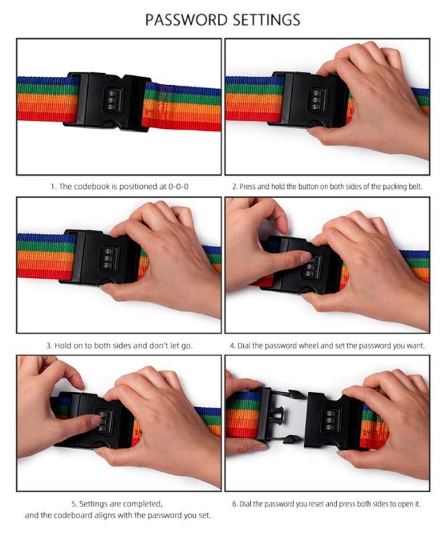 | サイズについての説明 | F 長さ約2M 幅約5CM ※実寸はメジャー採寸の為、若干の誤差が生じる場合があります。 暗証番号設定方法:1.古い暗訌番号を入カしますフォルトは0-0-0) 2.バックルの両側のボタンを長押ししたままにします 3.新しい暗証番号を設定します 4.ボタンを放します |