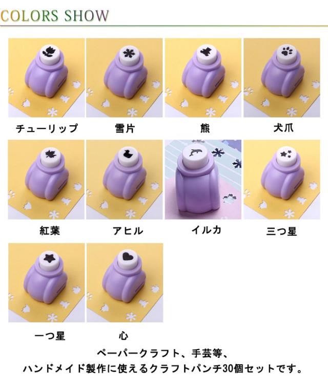 | ペーパークラフト、手芸等、ハンドメイド製作に使えるクラフトパンチ30個セットです。 クリスマス、ハロウィン、ニューイヤー等のカードの作製や、ギフトラッピングに良い品です。 また、手帳をパンチしたりパンチしたものを貼ったりすることで華やかに彩るのにも良いのではないでしょうか 使い方はあなたのセンス次第ぜひ色々なものに挑戦してお気に入りのグッズを製作してください | |