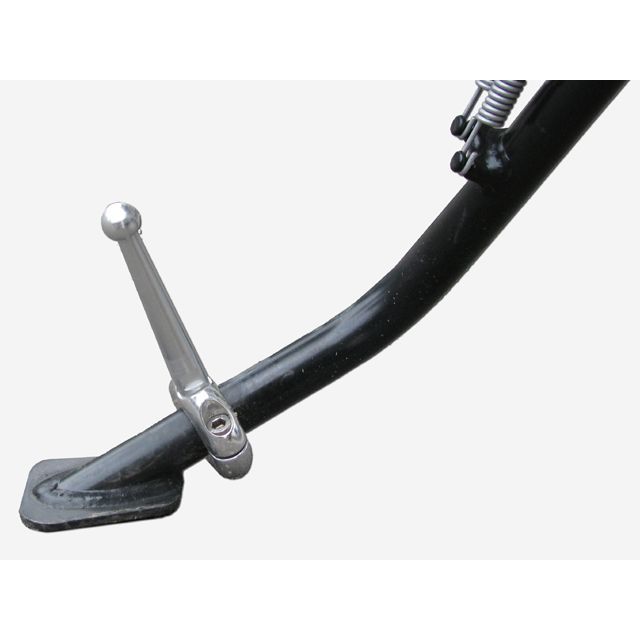 車両にまたがった状態で、 サイドスタンドを跳ね上げることが困難な場合があります。その問題をこの「サイドスタンドヘルパー」によって足をかけやすくし、 またがったままでのサイドスタンドの操作を容易にします。