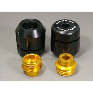 YZF-R1(09-)用に2種類のフレームスライダーをご用意いたしました。一つはノーカット・タイプ(006-SY013xxb)で、その名の通り、カウルの加工等の必要がなく、手軽に取り付けていただます。もう一つはレースやスポーツ走行の用途に合ったダイレクトマウント・タイプ(006-SY013R)です。カウルの加工が必要となりますが、マウントをフレームに固定し、スライダーをスクリューインするリボルバータイプを採用し、簡単に本体部分だけを脱着できます。左右セット品。