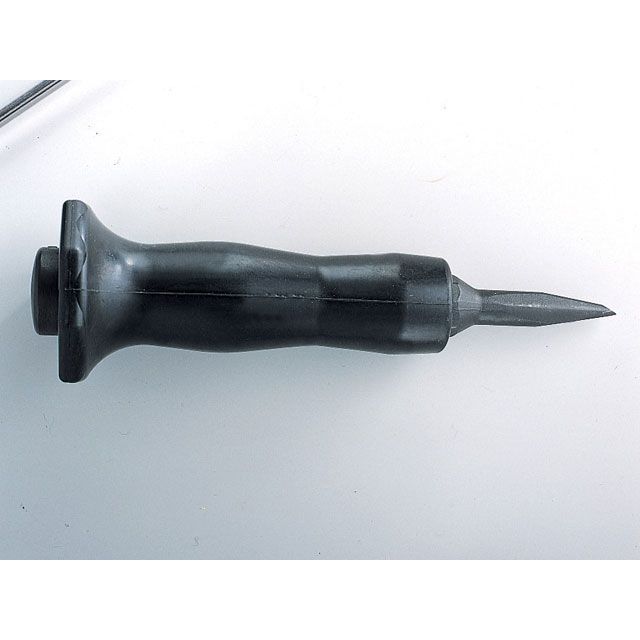 ■グリップは握りやすいゴム製で、ツバ付きなので誤って手を叩きにくい。