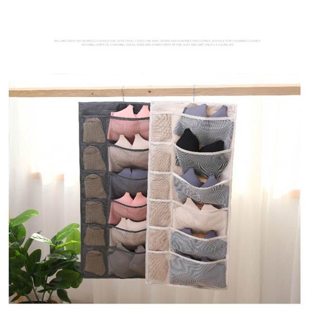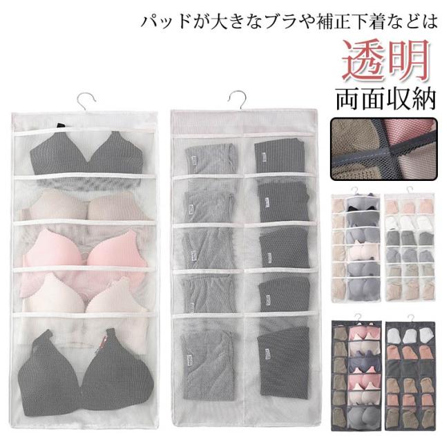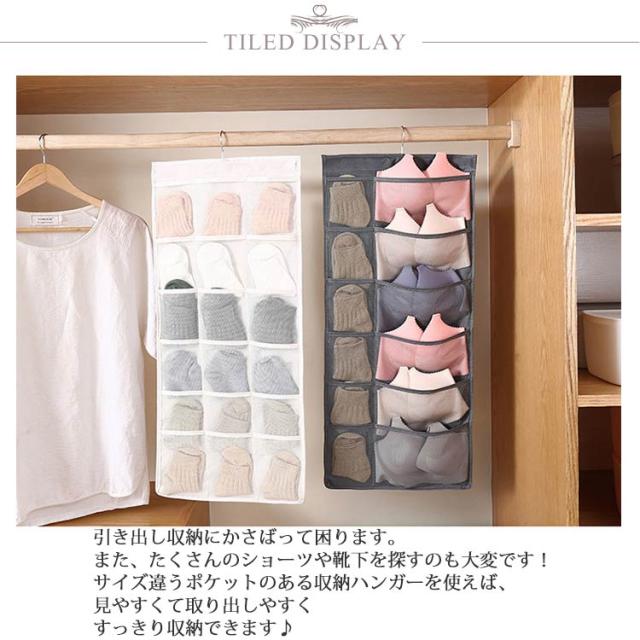 収納ポケット ウォールポケット ハンガー式 靴下 下着 吊り下げ収納 下着収納 ブラジャー収納 ハンガー式 両面収納 大容量 透明 メッシュ 洗える 壁掛け小物入れ 便利収納 収納ポケット 片付け上手 ハンカチ収納 パンティ収納 タオル収納 便利 シンプル おしゃれ