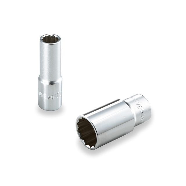 ディープソケットで奥まった箇所のボルトや、ボルトが突き出したナットを回すのに最適なソケット。対辺12角形状。差込角9.5mm。二面幅16mm。