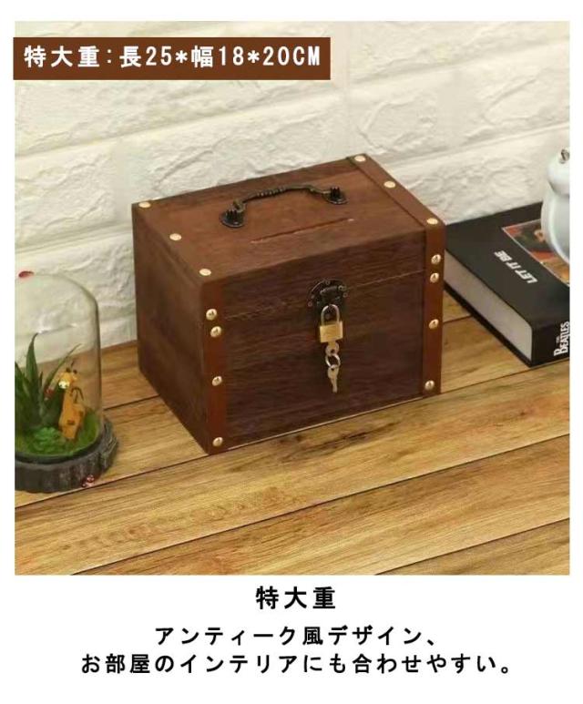 木製 小銭 木箱 おもしろ 千円札 お札 アンティーク 鍵 貯金箱 貯金箱 レトロ インテリア おしゃれ かぎ 持ち手付き 一万円札 コイン インテリア プレゼント 宝箱 子供 キッズ 誕生日 収納ボックス 大容量 ナチュラル