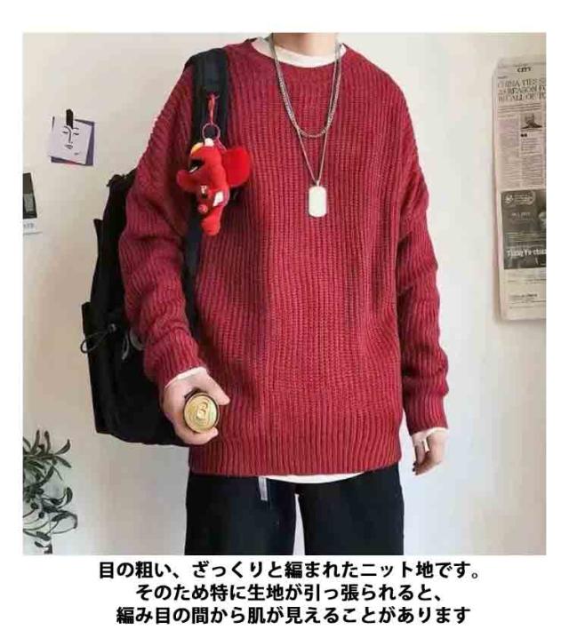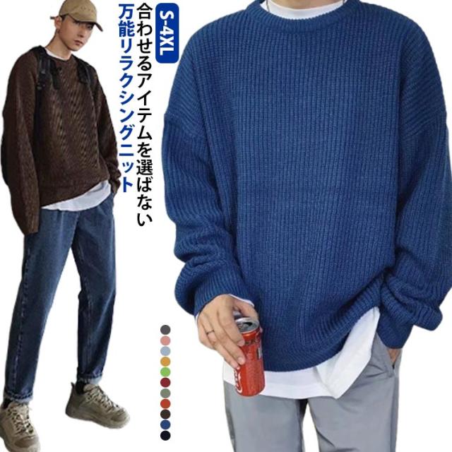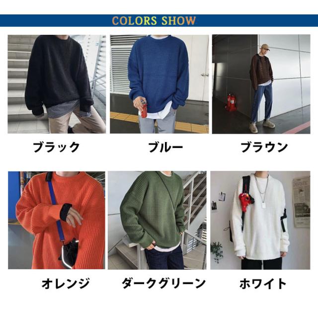 オーバーサイズ ニット 編み ゆったり オーバーサイズ セーター ニットセーター ニット ビッグニット ワッフル 厚手 クルーネック ビッグシルエット 秋服 韓国ファッション セーター 秋 冬 冬服 春 洗える メンズファッション