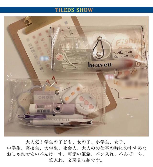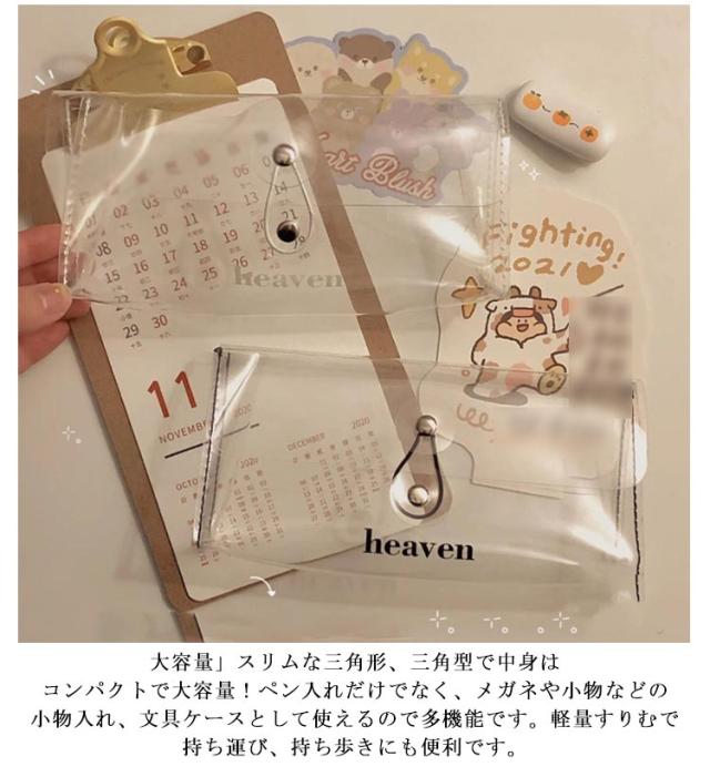 | シンプルでお洒落!かわいい透明ペンケース・ペンポーチ! 大人気!学生の子ども、女の子、小学生、女子、中学生、高校生、大学生、社会人、大人のお仕事の時におすすめなおしゃれで安いぺんけーす、可愛い筆箱、ペン入れ、ぺんぽーち、筆入れ、文房具収納です。 大容量」スリムな三角形、三角型で中身はコンパクトで大容量!ペン入れだけでなく、メガネや小物などの小物入れ、文具ケースとして使えるので多機能です。軽量すりむで持ち運び、持ち歩きにも便利です。 しんぷるでオシャレなデザイン構造のぺんけーすなので、男の子や女の子、小学生の子供も文房具の収納に使えます。旅行に行く際のトラベルポーチ、メイク収納、化粧ポーチ、ツールケースとしてもおすすめです! 透ける筆箱なのでどこに何が入っているのか探しやすいです。また、ペンケースは机の上に置きやすいです。開けたら口が大きくなるところも、このふでばこの使いやすいところです。メガネ収納にも使えます。 こどもの入学祝い、大切な友達などにプレゼント・ギフト対応も承ります。 | |