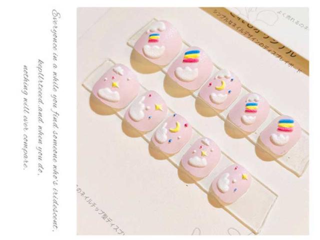 ネイルチップ キッズ 子供用付け爪 ジェルネイルチップ セルフネイル ジェルネイル 硬化 フット 3D 貼るだけ かわいい ポイントネイル 女の子 ジェルネイル ネイルより簡単 ジェルネイルチップ ベリーショートラウンド
