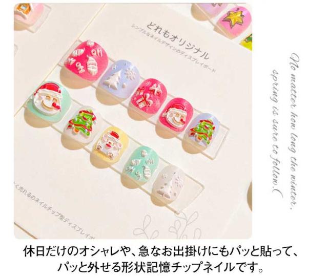 | 普段ネイルができない方や、ネイルには興味があるけどなかなか踏み込めない方にお勧めです。 アクセサリー感覚で指先が綺麗になるのでテンションもUP!! 休日だけのオシャレや、急なお出掛けにもパッと貼って、パッと外せる形状記憶チップネイルです。 温めるとふにゃふにゃになって、冷めない間に自爪に押し当てて密着させます。 幅はやすりで削って調整可能。自爪にしっかり沿うので外れにくく、粘着力が低下した両面テープを貼り直すと何度も使えます。 柔軟性があるため爪の形に合わせて着用でき、衝撃や圧力で折れたり曲がったりもしません。 粘着テープを交換すれば、何度も繰り返し使えます。 | |