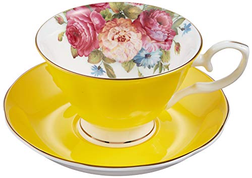 ◆商品名:ロイヤルアーデン コーヒー ティー カップ ソーサー セット 陶器 電子レンジ対応 ボーンチャイナ 250ml 花柄 薔薇 イエ ロー 37142