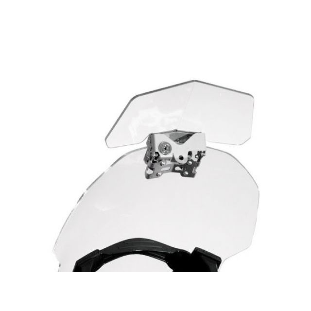 ウインドスクリーンの上端に取り付けるこのスポイラーは、走行風の流れを変えてライダーに当たらないようにします。