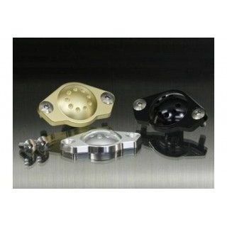 充分な厚みのベース部と、その中央にふくらみを持たせた立体的なデザイン。STDの鋳造品では表現しきれない、削り出しならではのシャープで美しいフォルムは、メカニカルなDUCATIエンジンにマッチします。専用チタニウムボルト2本付属。