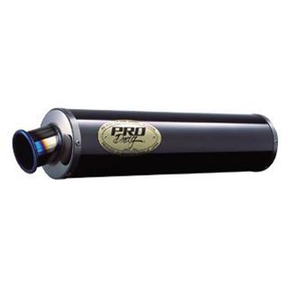メタルブラック:カーボンに変わる次世代ブラックとして開発。メタルチタンの光沢と軽さに、深みのある黒を併せ持つサイレンサーは、業界では絶対不可能といわれた技術であり、プロドラッグでは以前より持てる技術の全てを注ぎ込み、研究・開発に成功いたしました。メタルチタンの性能の他、ブラックの表面は耐摩耗性が向上し、サイレンサーバンドの傷等が付き難くなっています。内部は新技術のチタンインナーを採用。これは従来品より40%の軽量化と触媒効果により、黒煙の付着を極力抑え、排ガスをクリーンにします。また硬質のチタンインナー表面は音響反射に優れており、更なる重低音に成功。