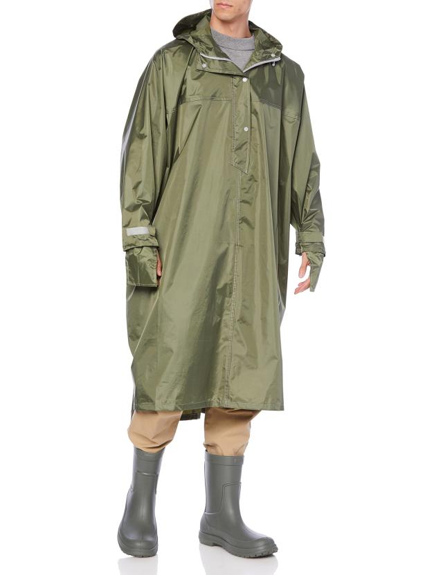 ◆商品名:ウィンターチェリー レインコート 自転車 手甲カバー付 ハイポンチョ メンズ カーキ フリー