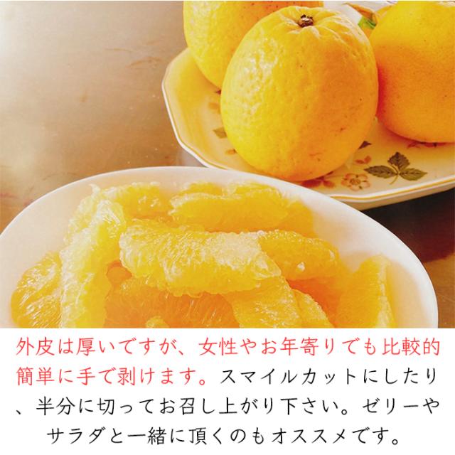 外皮は厚いですが、女性やお年寄りでも比較的簡単に手でむくことができます。スマイルカットにしたり、半分に切ってお召し上がり下さい。ゼリーやサラダと一緒にお召し上がり頂くのもオススメです。常温でも保管できますが、長く日持ちさせるには、ビニール袋に入れて野菜室で保管して下さい。