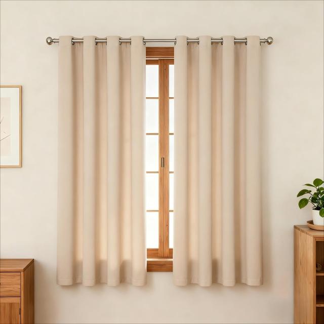 Dehome 遮光カーテン ハトメ型 間仕切り 目隠し 断熱 UVカット ベージュ 幅100cm 丈130 cm 1枚入り