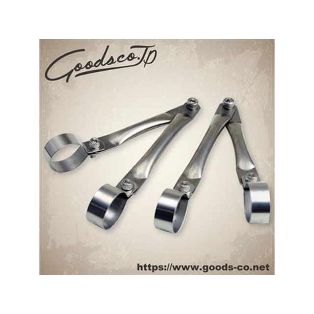 フロントフォークにクランプするヘッドライトステー。