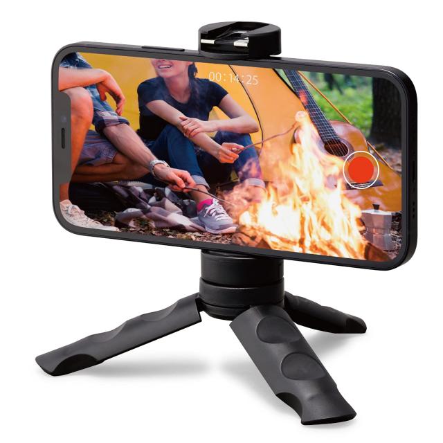 コンパクトで持ち運びやすい、スマートフォン用三脚です。ポケットにも入る超小型・軽量設計です。