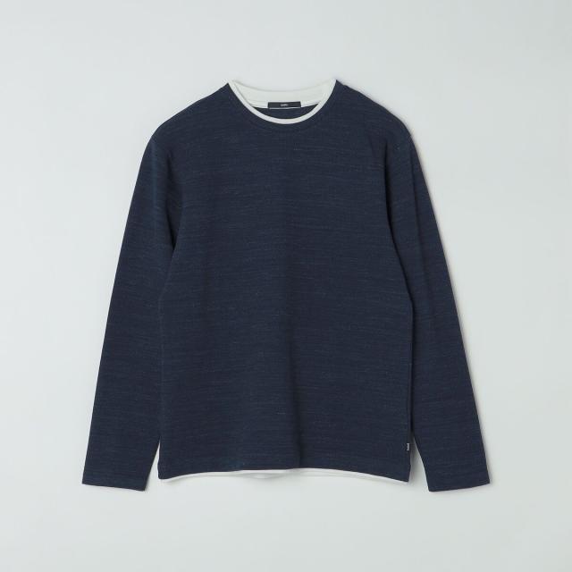 シップス(SHIPS)/SHIPS: フェイクレイヤード ピケ クルーネック 長袖 カットソー