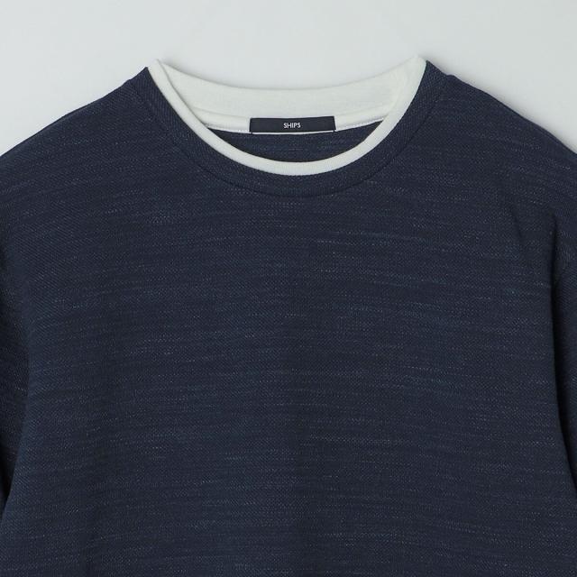 SHIPS: フェイクレイヤード ピケ クルーネック 長袖 カットソー