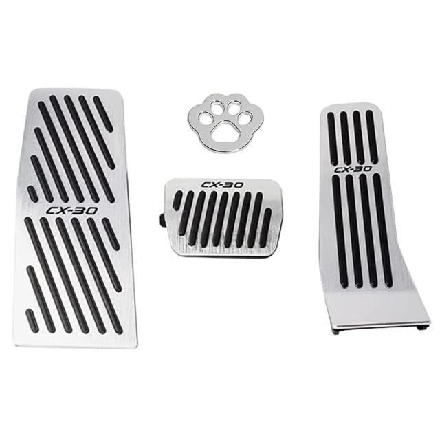 【CX-30専用ペダル】マツダCX-30実車を採寸した完全専用設計にすることで、CX30 DM系適用、フィッティングもバッチリ。人体工学による設計、ペダルをより快適に使います。しっかり固定出来るのでペダルを踏んでもズレる感覚は無い。装着感はしっかり固定され見た目もよく靴底の当たり感もよくお勧めのアルミペダルカバーです。足元の質感UP!ペダル操作GOOD!