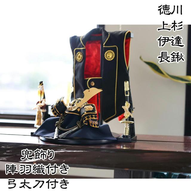 弓太刀付き・陣羽織付きの豪華な兜飾りです。