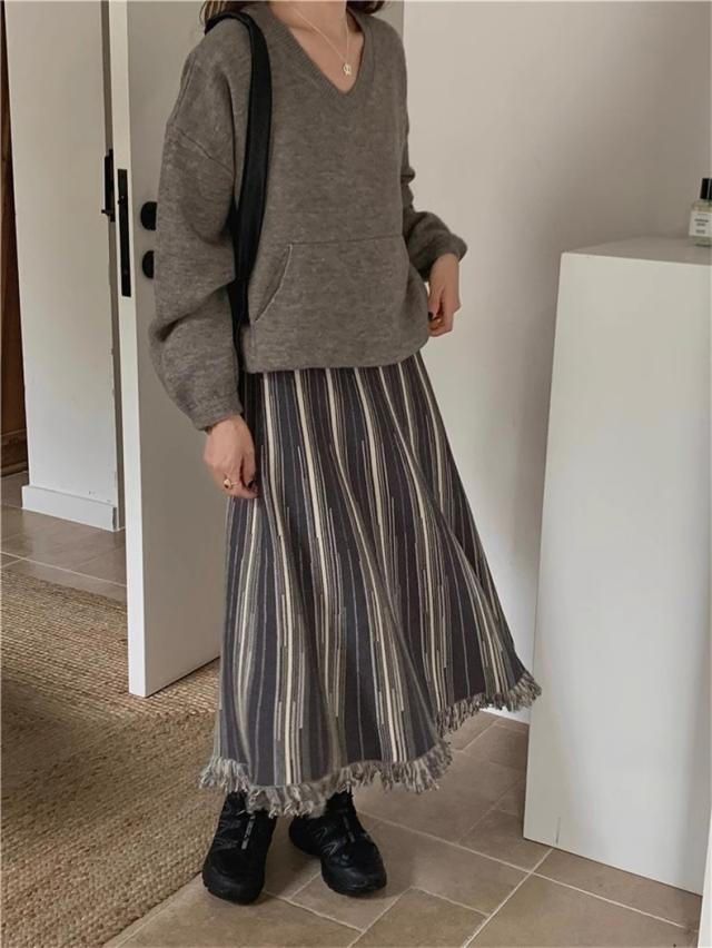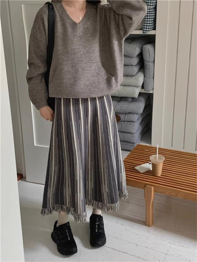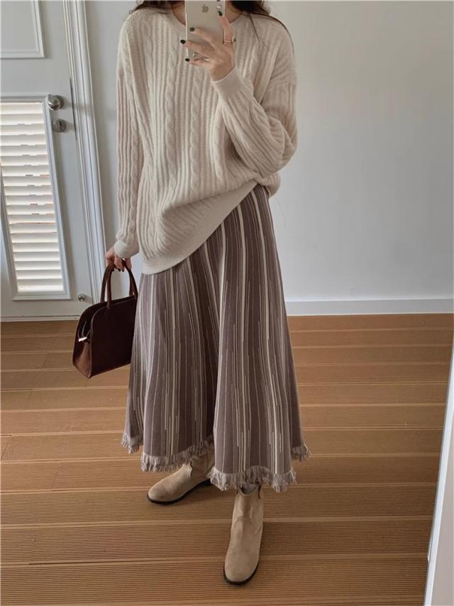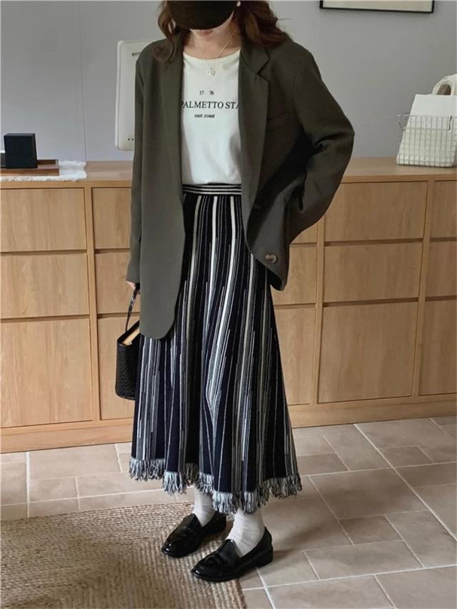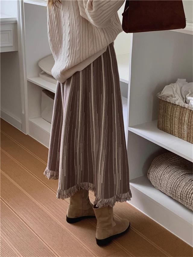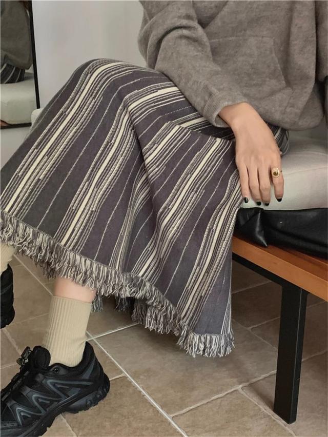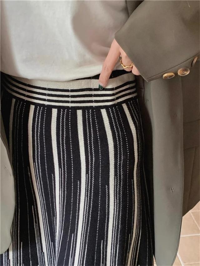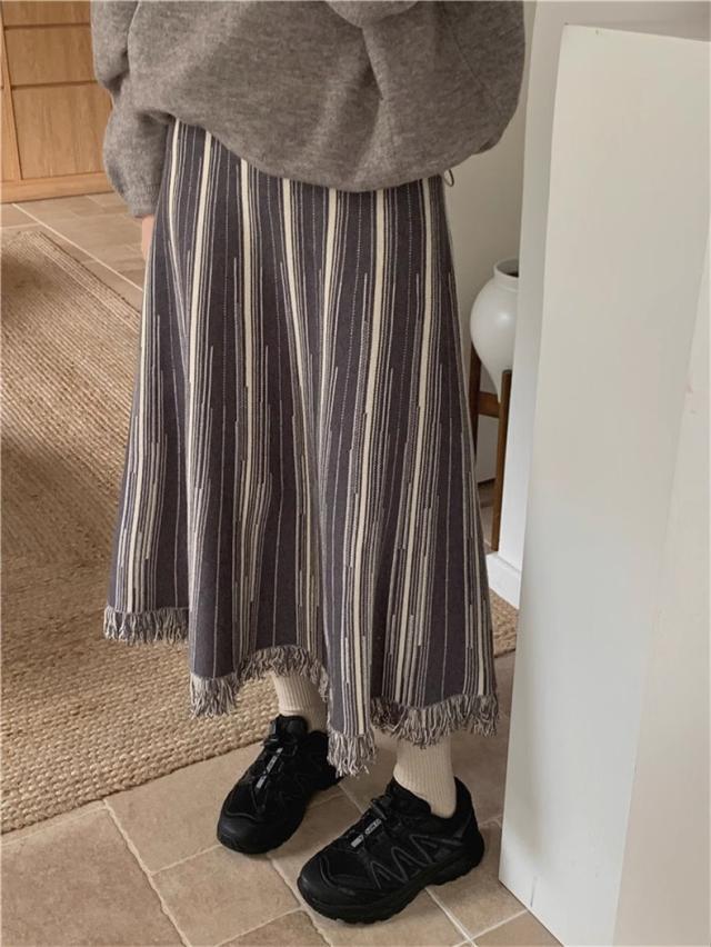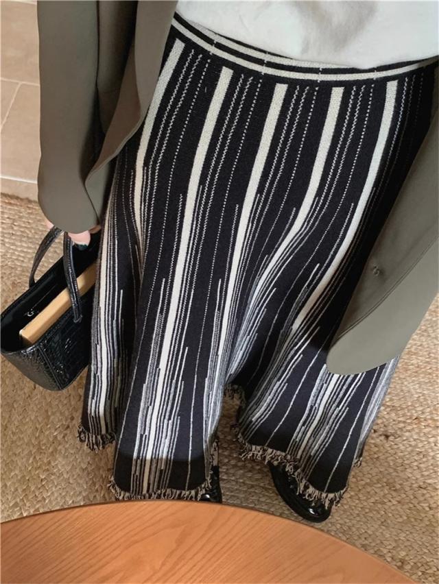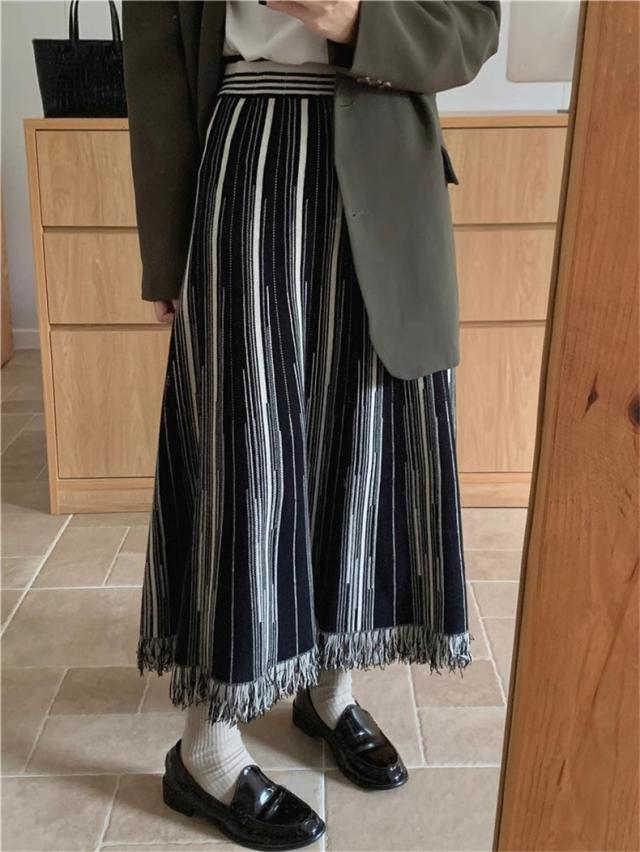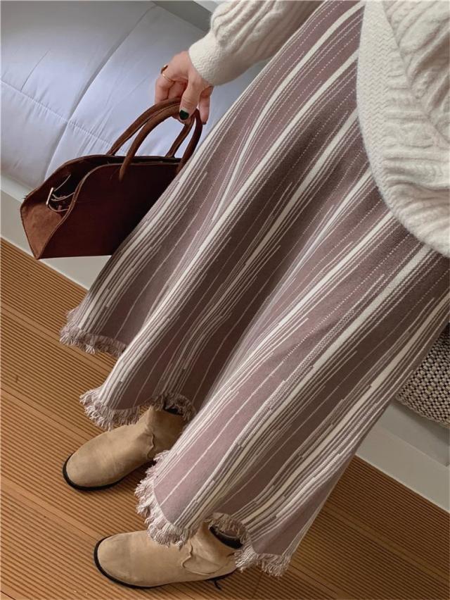ロングスカート レディース ボトムス ストライプ ウエストゴム フレア Aライン ゆったり お洒落で可愛らしいデザイン スタイルアップを叶える 大人気