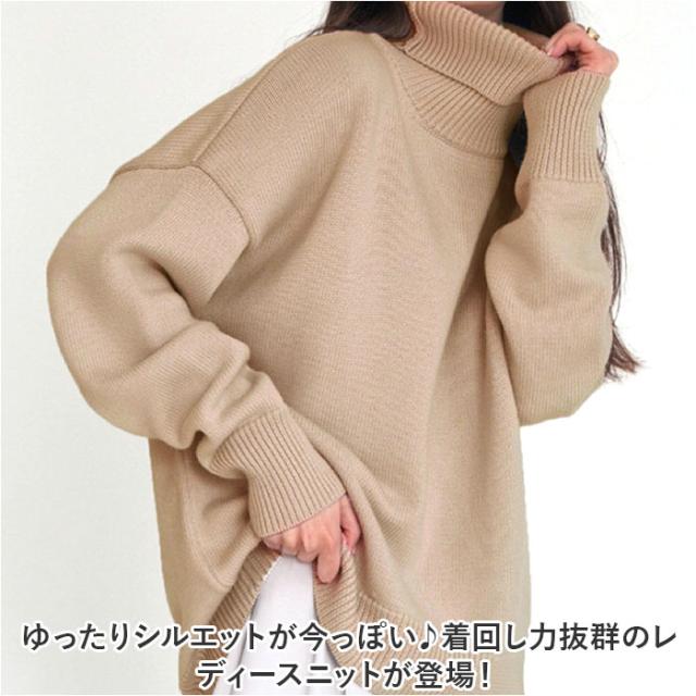 ハイネック ニット セーター ニットセーター 通販 タートルネック 重ね着 体型カバー レディース 秋 冬 着回し きれいめ 無地 ゆったり シンプル エレガント カジュアル お出かけ