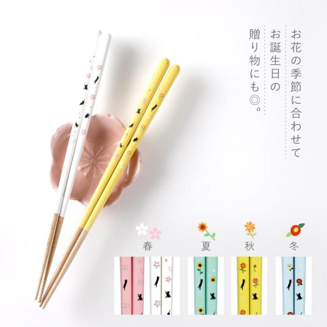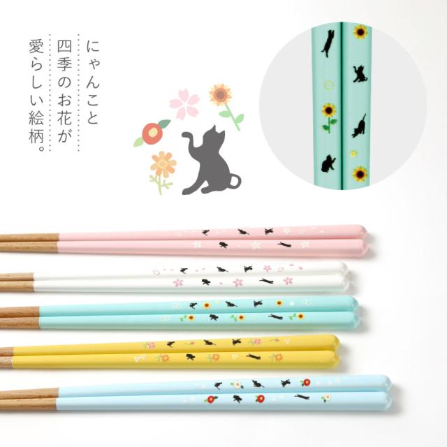 箸 名入れ 大人 食洗機対応 23cm 猫 雑貨 かわいい おしゃれ お箸 天然木 抗菌 先 細い 日本製 ねこと四季の花 メール便対応