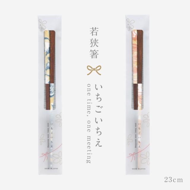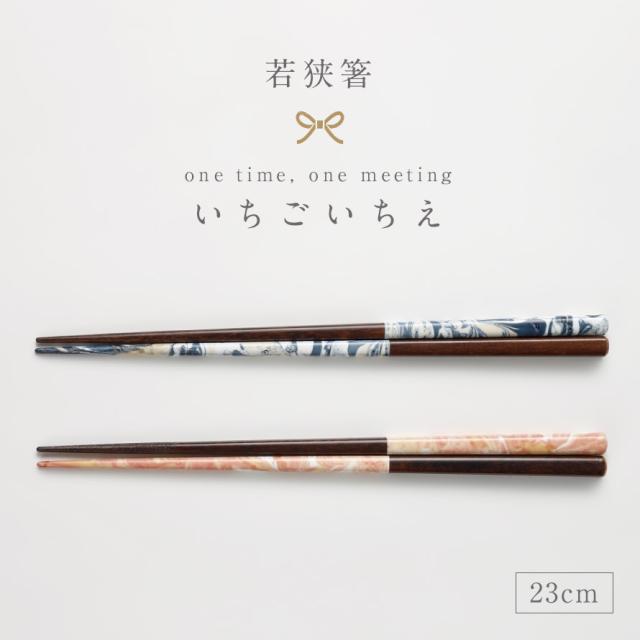 お箸の産地として有名な福井県小浜市の若狭塗のお箸。手作業で1つ1つ同じ柄のない、「いちごいちえ」のお箸。