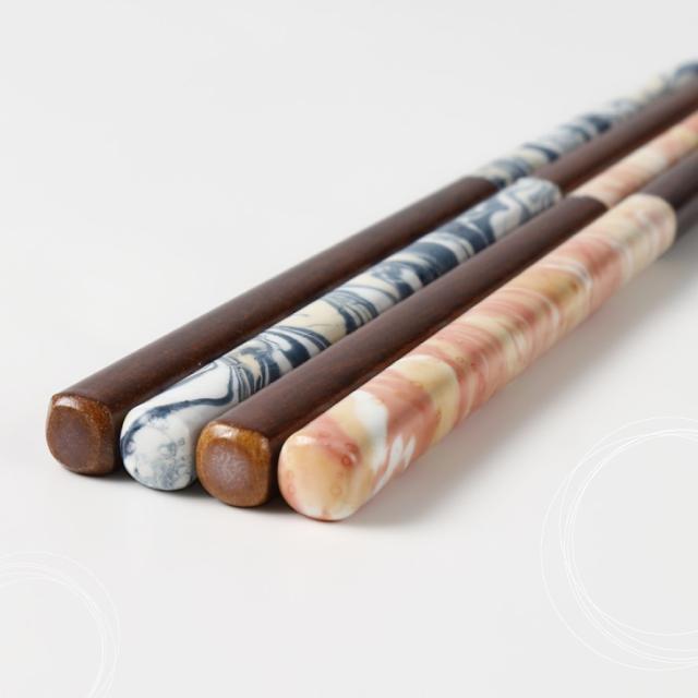 絵画技法の「マーブリング技法」によって模様をつけ、一膳一膳同じ柄のないお箸、「いちごいちえ」水面シリーズ。広がる水面のような、みずみずしい美しい仕上がり。