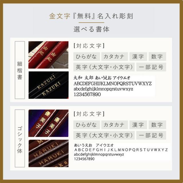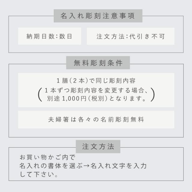 ご希望の方には、彫刻代金無料でお箸に名前を彫刻することができます。