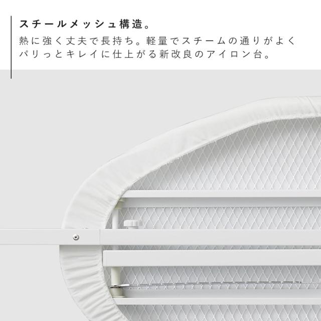 ■材質:表面布/綿100%、クッション材/ポリエステル、天板・脚部/スチール(粉体塗装)、アイロン置き台・高さ調節レバー/スチール(クロームメッキ)、キャップ/ポリエチレン