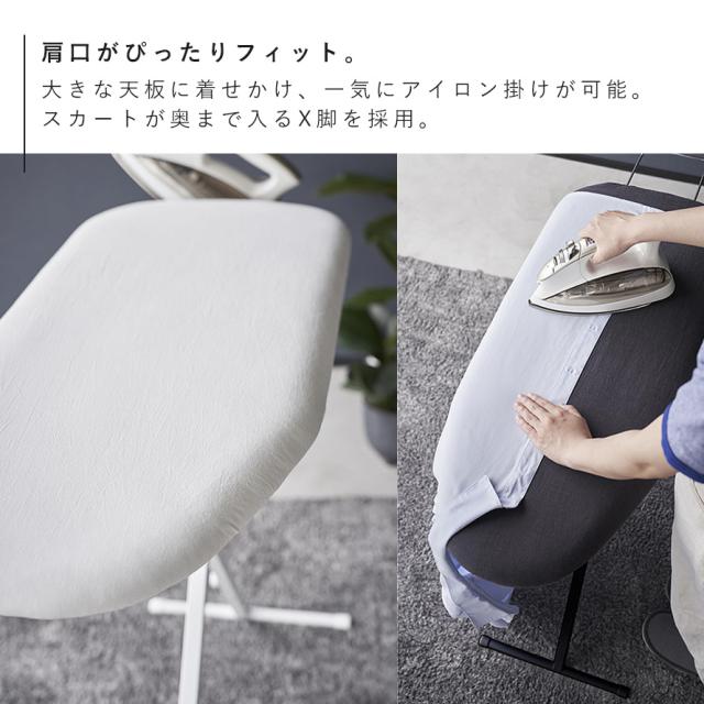 後身頃は大きな天板に着せかけ、一気にアイロン掛けできます。