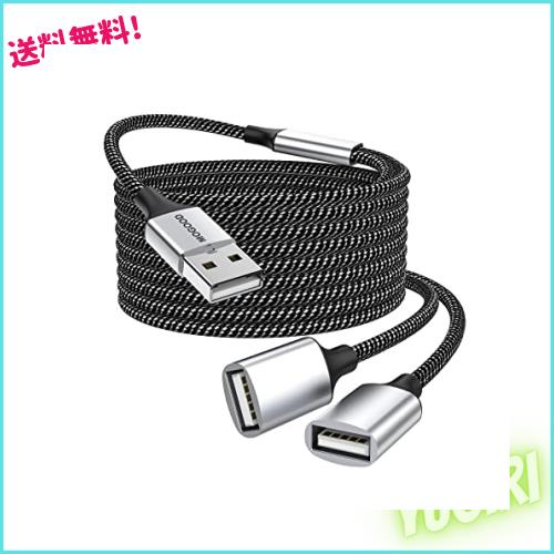 USB延長ケーブル、USB分岐器USB Aオス〜2メス延長ケーブル耐久性のあるUSB分岐器ケーブルナイロン編み高速データ伝送とプリンタ、USBキー
