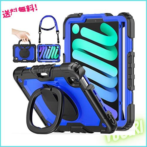 iPad mini6 ケース 耐衝撃 頑丈 落下保護 360°回転スタンド 調節可能 頑丈 丈夫 リングハンドル ペン収納 ショルダーストラップ ハード 全面 フィルム 衝撃保護 現場 工事現場用 子供 キッズ 蓋なし 横置き 縦置き iPad mini 第6世代8.3インチ A2567/A2568/A2569