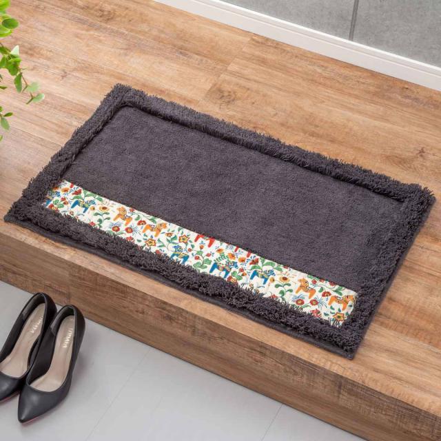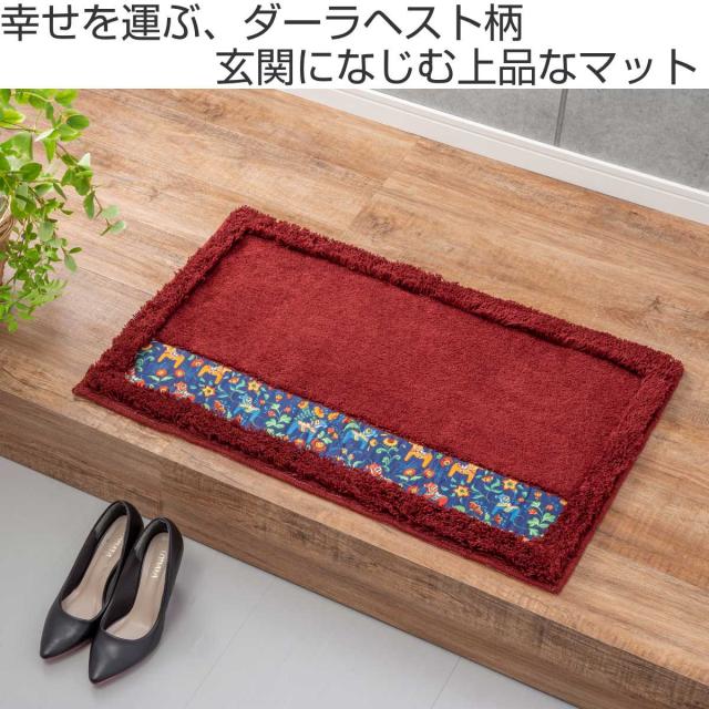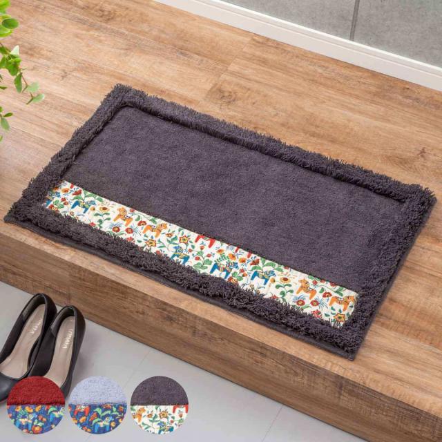 幸せを運んでくれる馬として世界中の人たちに親しまれている、ダーラヘスト柄の洗える玄関マットです。大切な人への贈り物として人気があります。