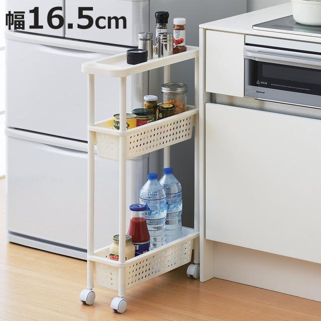 キッチンワゴン スペーシア スマートスリムワゴン 幅16.5cm 3段 ( キャスター付き 隙間収納 キッチン すきま収納 キッチンストッカー ストッカー スリム スリムストッカー ワゴン収納 キッチン収納 キッチン すきま収納)