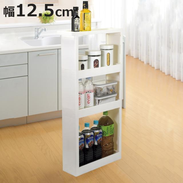 キッチンワゴン スペーシア スライドスリムワゴン 幅12.5cm 4段 ( キャスター付き 隙間収納 キッチン すきま収納 キッチンストッカー ストッカー スリム スリムストッカー ワゴン収納 キッチン収納 キッチン すきま収納)