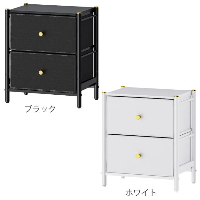 《 LH14620 ベッドサイド ソファサイド 引出し リビング収納 寝室 玄関 クローゼット ランドリー フェイクレザー 収納棚 リビングチェスト ベッドサイドチェスト ベッドサイドテーブル キャビネット たんす タンス 二段 オシャレ お洒落 ブラック ホワイト 黒 白 約 幅47 奥行33 高さ55 cm センチ 》