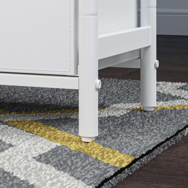 | 材質 | 本体フレーム、補強ワイヤー:スチール(粉体塗装) 天板:合成樹脂化粧繊維版(メラミン) 引出し芯材:MDF、厚紙 引出し生地:ポリウレタン、ポリプロピレン 取っ手、トップアクセサリー:ポリプロピレン |
