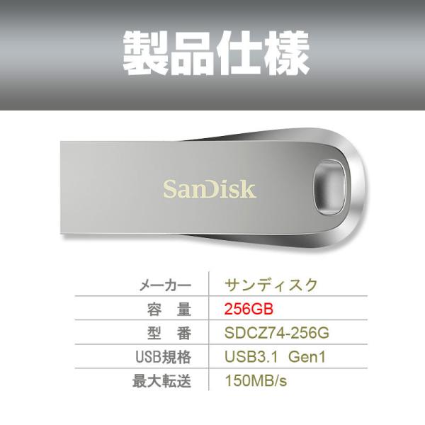USBメモリ 256GB USB3.1 Gen1 SanDisk サンディスク Ultra Luxe 全金属製デザイン R:150MB/s 海外パッケージ ゆうパケット送料無料