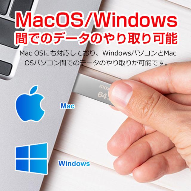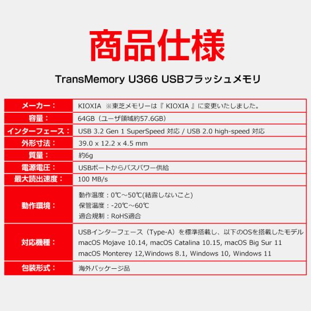 USBメモリ 64GB USB3.2 Gen1 KIOXIA TransMemory 薄型 スタイリッシュ メタリックボディ LU366S064GC4 海外パッケージ ゆうパケット送料無料
