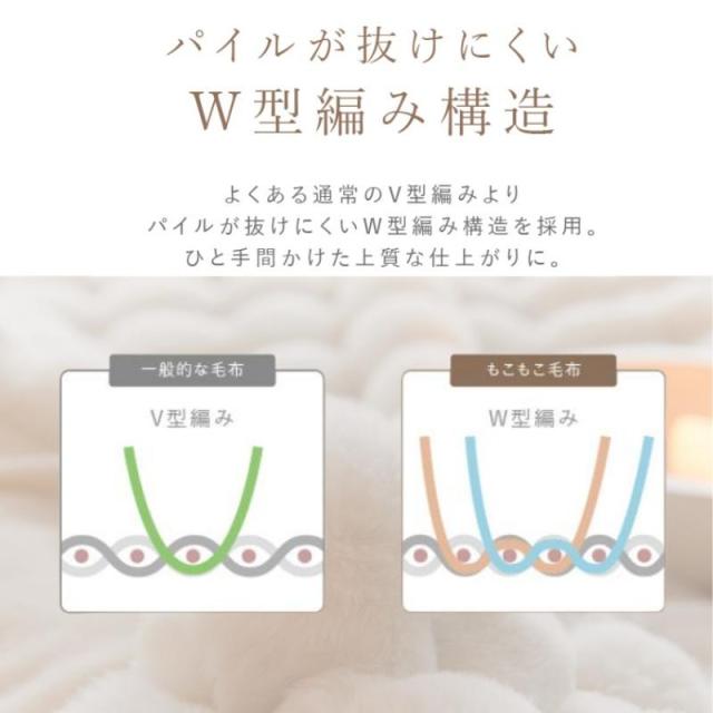 同じシングルサイズの毛布と比較しても一目瞭然。製造工程の「仕上げ」でふんわりと立ち上ポリュームたっぷりです。