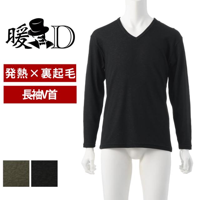 発熱 裏起毛 長袖V首シャツ メンズ 秋冬 あったか ストレッチ インナー 防寒 アンダーウェア 肌着 男性 紳士 K1001T-E