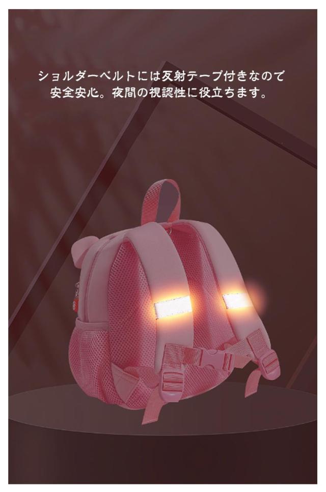 | 【商品名】キッズリュック 【サイズ】サイズ表 【素材】SBR素材 【特徴】 チェストストラップ付きなので肩からずり落ちない。 お子さんが持ちやすいサイズ感♪小さな子供向けのミニサイズリュック。 ダブルファスナー仕様&側面にはペットボトルを収納できるポケット付き。 背面は蒸れにくく柔らかいメッシュパネル仕様。 ショルダーベルトには反射テープ付きなので安全安心。夜間の視認性に役立ちます。 ショルダーベルトは長さ調節可能です。 メイン収納部分が大きく開くので荷物の出し入れが楽々。 SBR素材を使用し、耐摩耗性、耐老化性に優れています。 リュックの上部にハーネス装着用のフック付き★リードを付けることで好奇心旺盛なお子様を迷子や事故から守ります。 お出かけやお散歩にもぴったり!保育園や幼稚園の登園バッグとしても◎ | |