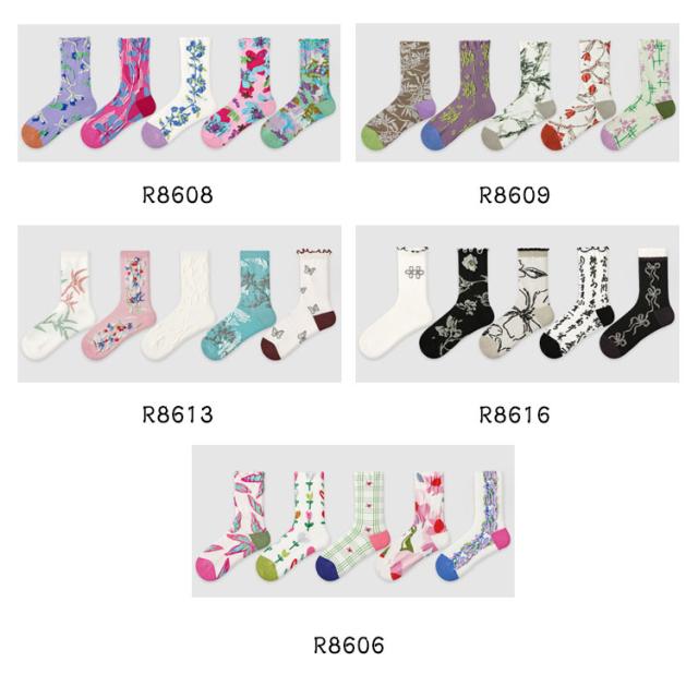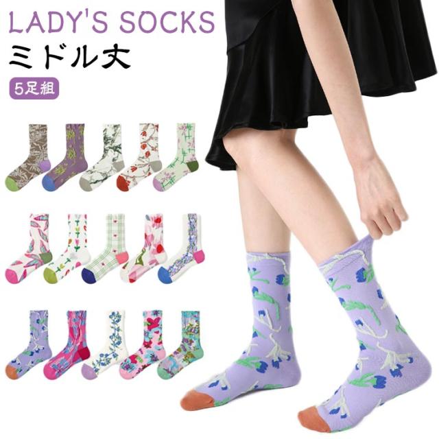 春 夏 秋 冬 ソックス ヴィンテージ風 靴下 花 フラワー 葉 レトロ 靴下 レディース 春 おしゃれ 5足セット ソックス 靴下 ミドル丈 スニーカーソックス クルー丈 クルーソックス 夏用 靴下 ソックス 女性用 レディース靴下 送料無料