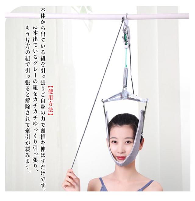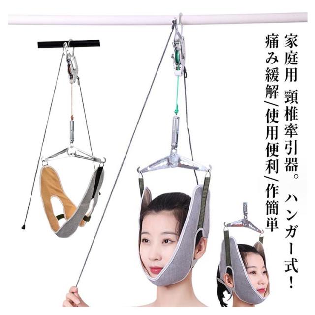 | 家庭用 頸椎牽引器。ハンガー式!痛み緩解/使用便利/作簡単 頚椎から感じる痛みに苦しんている方、 頚椎ニアを持病てもってお悩みの方にオススメ。 使用後は『ふぅへ』っという感覚を得る事ができると思います。 ご家庭で一人で簡単にストレッチ運動ができます。 【使用方法】本体から出ている紐を引っ張りご自身の力で頸椎を伸ばすだけです。2本出ているグレーの紐をカチカチゆっくり引っ張り、もう片方の紐で引っ張ると解除されて牽引が緩みます。 | |
