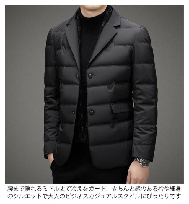 テーラードジャケット ダウンジャケット スーツ メンズ ダウンコート ダウン アウター ビジネスジャケット カジュアルジャケット 軽量 防寒 保温 秋冬 通勤 オフィス ジャケット スリム 大きいサイズ 防寒着 紳士 ビジネス カジュアル 秋服 秋 冬 冬服 送料無料