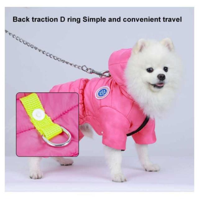 送料無料 ペット服 犬服 綿コート ダウンベスト風ジャケット 冬 犬洋服 パーカー フード付き 袖なし ドッグウェア 防寒 防水 リードリングあり ボタン留めタイプ 冬服 お出かけ 散歩 小型犬 中型犬