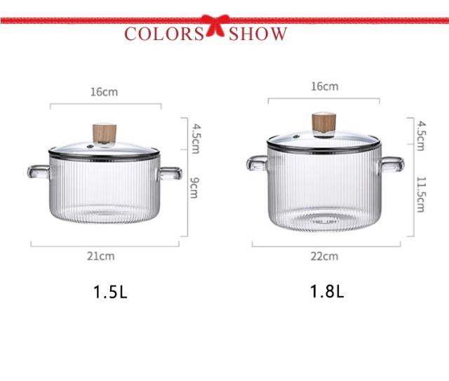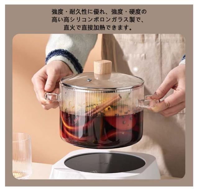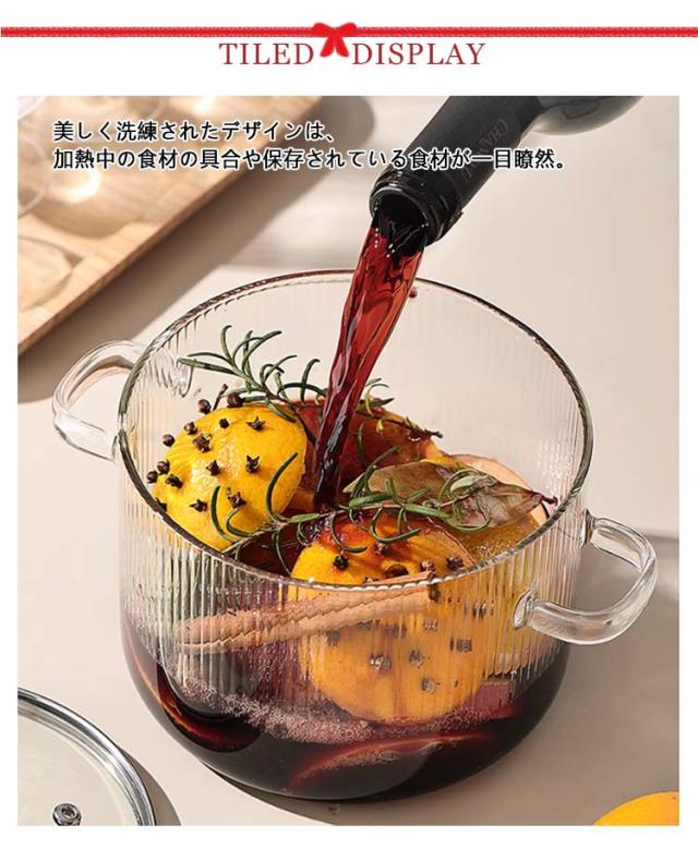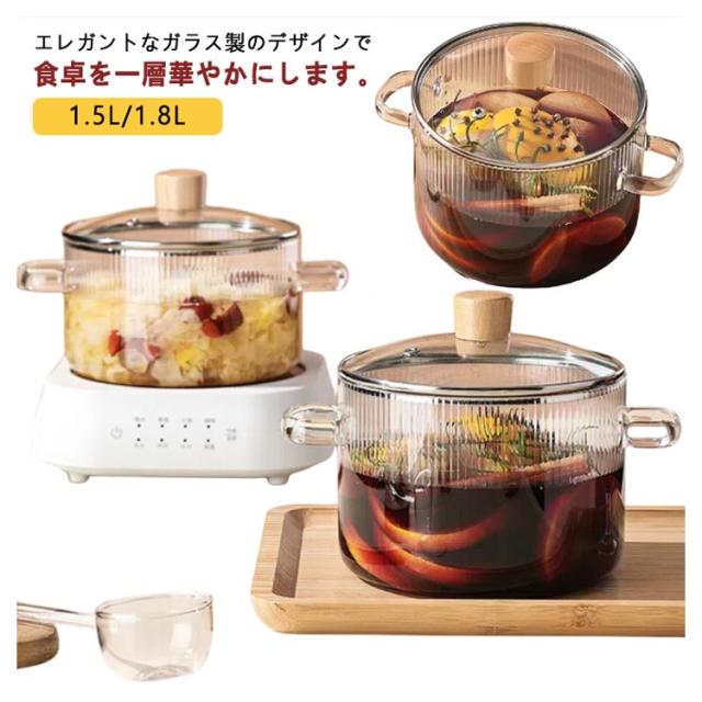 1.5L/1.8L 食材が見えるガラス鍋 卓上鍋 透明 ガラススープ鍋 ガラス調理鍋 耐熱ガラス 家庭用 ふた付き ガラス蓋 直火 オーブン 電子レンジ対応 食洗機対応 フタ付き 取っ手 煮込み鍋
